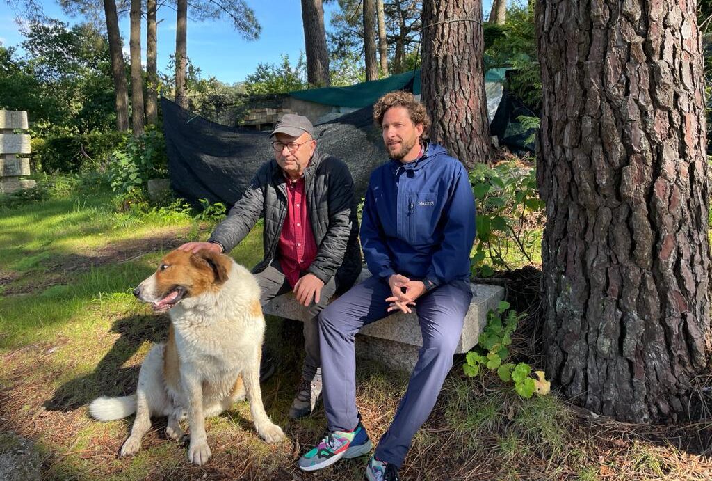 Lua no paró de jugar con los mastines de Manolo, que gigantescos nos escoltaban en todo momento, hasta que nos sentamos en el taller a disfrutar de unas botellas de Albariño natural y del chorizo local con pan que nos ofreció nuestro gran anfitrión y su maravillosa mujer.
