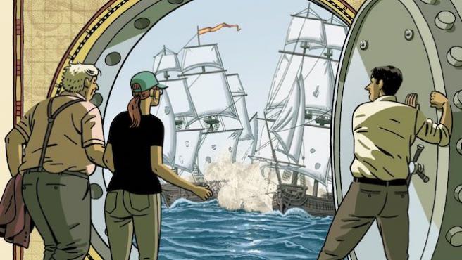 El Tesoro del cisne negro– Paco Roca el historietista español, Premio Nacional del Cómic, a partir de un guión original del diplomático y escritor Guillermo Corral, se plantea una intriga trepidante basada en hechos reales que recupera para los lectores todo el atractivo de la aventura clásica. Un cazatesoros americano encuentra un pecio español hundido. Piratas que se llevan un tesoro que otros malditos piratas ingleses ya hundieron. El Gobierno Español debe recuperarlo ya que es el mayor tesoro submarino encontrado jamás.