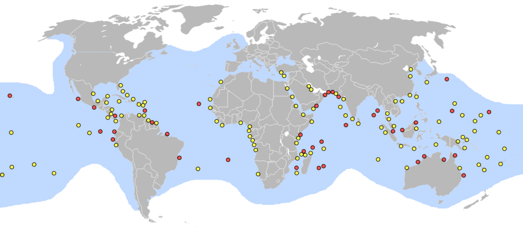 Las tortugas, realizan la nidificación en las zonas costeras de la mayoría de los países ecuatoriales en todo el mundo, debido a que necesitan largas playas naturales para depositar sus huevos.