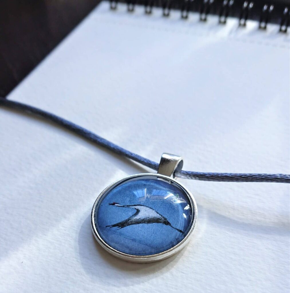 Anna Astrom y su Amuleto “Guía de la Vida”. Anna es una artista genial que he descubierto recientemente y a la cual admiro sinceramente. Todo lo que hace Anna está basado en el profundo amor hacia la naturaleza. Sus amuletos llevan una miniatura original de acuarela – pintada respetando la acuarela clásica donde el agua es el único blanco y el agua la luz – con motivo de paisaje o animal salvaje que nos ilustran el camino a seguir por el bien de nuestro futuro y el de las grullas y el de los bosques y los mares,… por el futuro de este planeta y por la vida! Yo encargué el mío es muy personal y Anna se ha volcado desde que compartí mi idea. El resultado excede con mucho lo que esperaba, lo llevo con orgullo, es mi ¨lifeguide Amulet” y me protege.