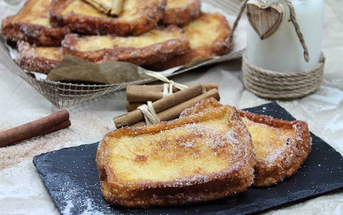 Torrijas, un dulce de origen europeo pero de larga tradición en España. Consiste en una rebanada de pan (habitualmente no del día, ya algo duro) que es empapada en leche o vino y, tras ser rebozada en huevo, se fríe en una sartén con aceite. Se endulza con miel, melaza o azúcar y es aromatizada con canela. Es similar a la tostada francesa. En mi casa se hacen mucho y hay tejemanejes de tuppers toda la semana. Placeres culpables y gozosos en familia.